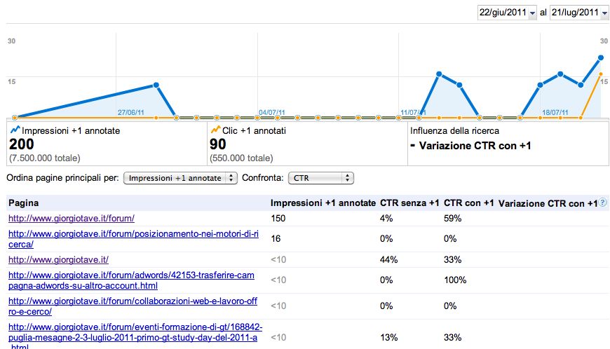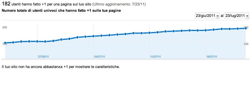 anche se è ancora presto e l’influenza la si vedrà quando in migliaia avranno cliccato sul +1, volevo comunque condividere con voi i nostri dati prendendo come fonte gli Strumenti per Webmaster e Google Analytics.