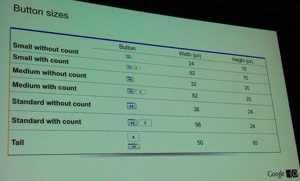 E dicevamo anche che Google, durante l’I/O Developer dei giorni scorsi ha mostrato agli sviluppatori un’anteprima del processo di inserimento del +1 all’interno dei siti web, con la comparsa dunque del bottone sotto (o sopra) i contenuti, attraverso diverse misure e svariate soluzioni grafiche.
