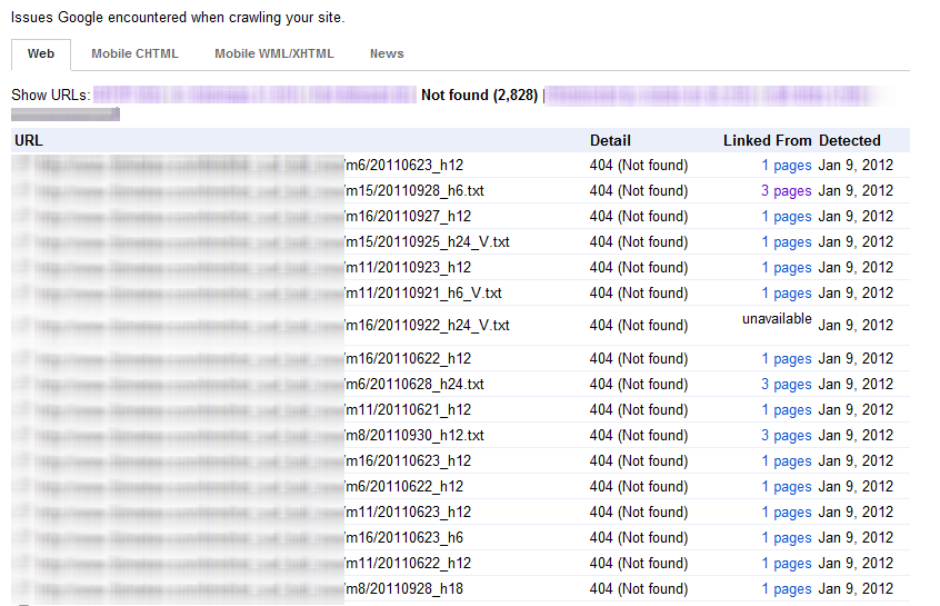 Anche questo porta ad avere una quantità folle (2,828) di errori 404 da Webmaster Tools perché ovviamente il percorso che viene passato non è sempre quello reale.