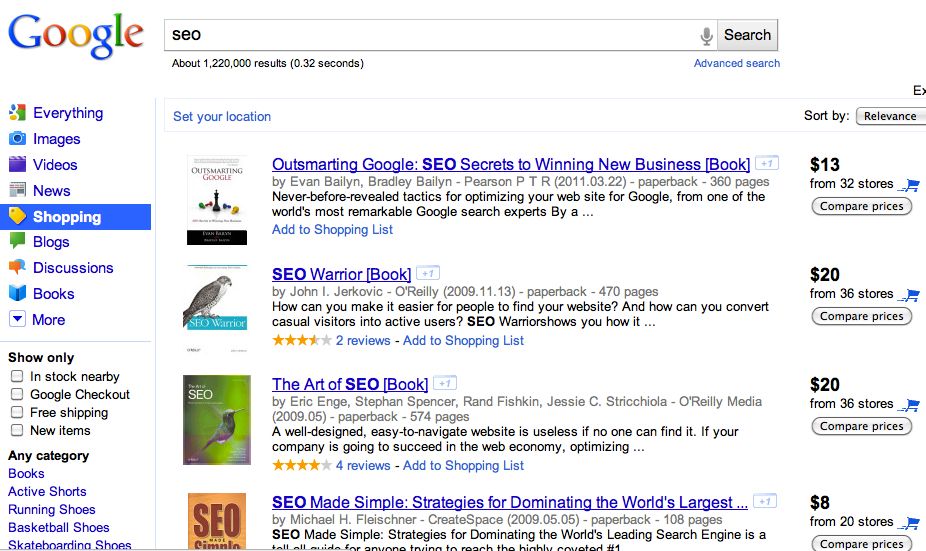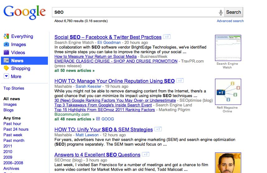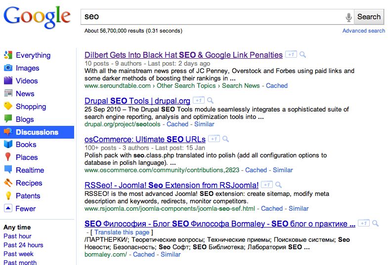 Con un tweet Giorgio ha segnalato di visualizzare il +1 in Google.com non soltanto nelle normali ricerche, bensì anche all’interno dei motori verticali di Google, come News, Discussions, Recipes, Shopping.