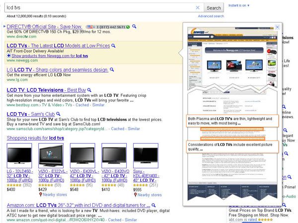 Anche gli AdSense, posizionati solitamente in testa alla pagina principale del motore di ricerca, ora daranno la possibilità all’utente di visualizzare un’anteprima della landing page a cui sono collegati.