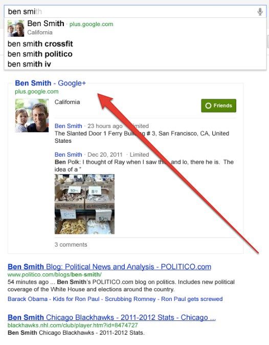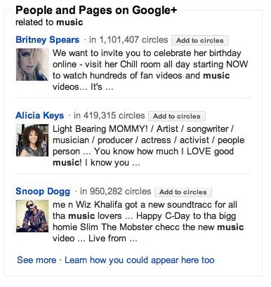 Google non si è limitata alla sola integrazione dei risultati provenienti dalle cerchie con quelli della rete, ma ha anche deciso di spingere in maniera particolare i profili di Google+.