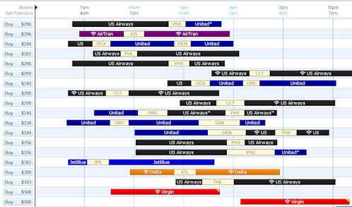 Un esempio è questo hipmunk.com, per i viaggi. Offrono una visualizzazione anticipata di ciò che sarà il viaggio, con un’ottima interfaccia utente.
